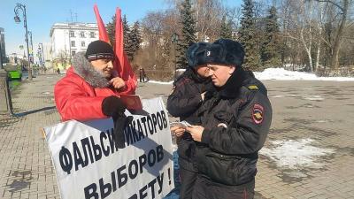 Доверенное лицо кандидата на должность Президента России Павла Грудинина, секретарь Калининского райкома КПРФ Сейгей Пыхалов провёл одиночный пикет в центре Тюмени против фальсификации итогов голосования.