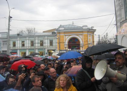«Ярославцы, не позволим осквернять чистую и светлую землю Ярославля!», - призвал в своем выступлении ветеран Вооружённых сил Михаил Васильевич Козка.