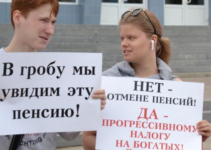 время пикета проходил сбор подписей против повышения пенсионного возраста. Свои
