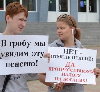 время пикета проходил сбор подписей против повышения пенсионного возраста. Свои