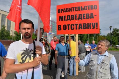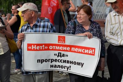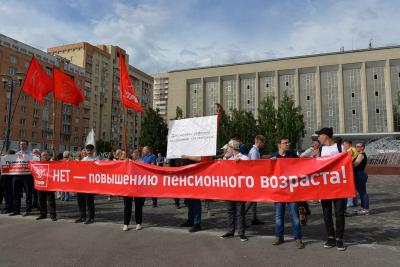 повышению пенсионного возраста. Пикетирующих не остановил ни дождь, ни наступившая после него жара. Среди