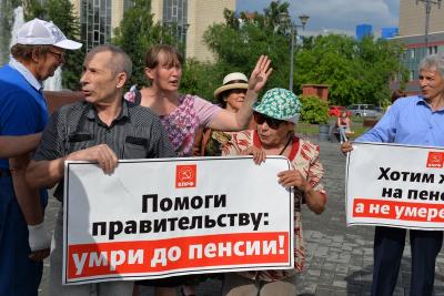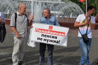 Новосибирские коммунисты организовали пикет против повышения пенсионного возраста около ГПНТБ. Они уверены, что «бюджет страны пенсиями народа не спасешь» и предлагают «просто сжечь себя после 60 лет».