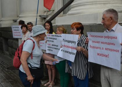 у коммунистов их позицией по пенсионной реформе, фотографировали плакаты,
