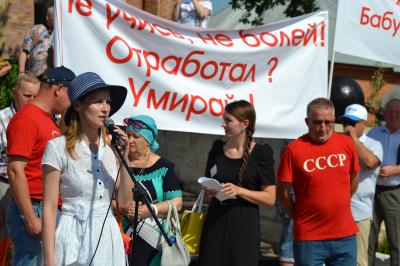 У микрофона выступили депутаты-коммунисты городского Совета и Законодательного собрания Оренбуржья, представители общественных организаций, простые жители города. Все они говорили о недопустимости принятия этого античеловеческого и антисоциального закона. На фоне безработицы, развала производственных предприятий, отсутствия детских садов и убогой системы здравоохранения, решение правительства Медведева заставить работать людей “до гробовой доски” равно геноциду россиян. Собравшиеся выстроились в огромную очередь к столу, где проводился сбор подписей под обращением к высшим эшелонам власти. Всего за час против инициативы Правительства РФ и Президента РФ о повышении пенсионного возраста поставили подписи около тысячи человек. И более 7 500 человек подписали обращение во время ежедневных пикетов, проводимых коммунистами.