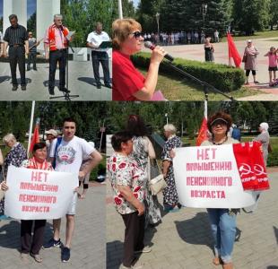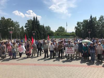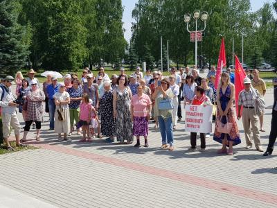 1 июля Нижнекамский горком КПРФ провёл акцию протеста - митинг против повышения пенсионного возраста, тарифов ЖКХ, повышения НДФЛ и НДС, роста стоимости ГСМ, против капитализации здравоохранения, образования и общего обнищания граждан России.