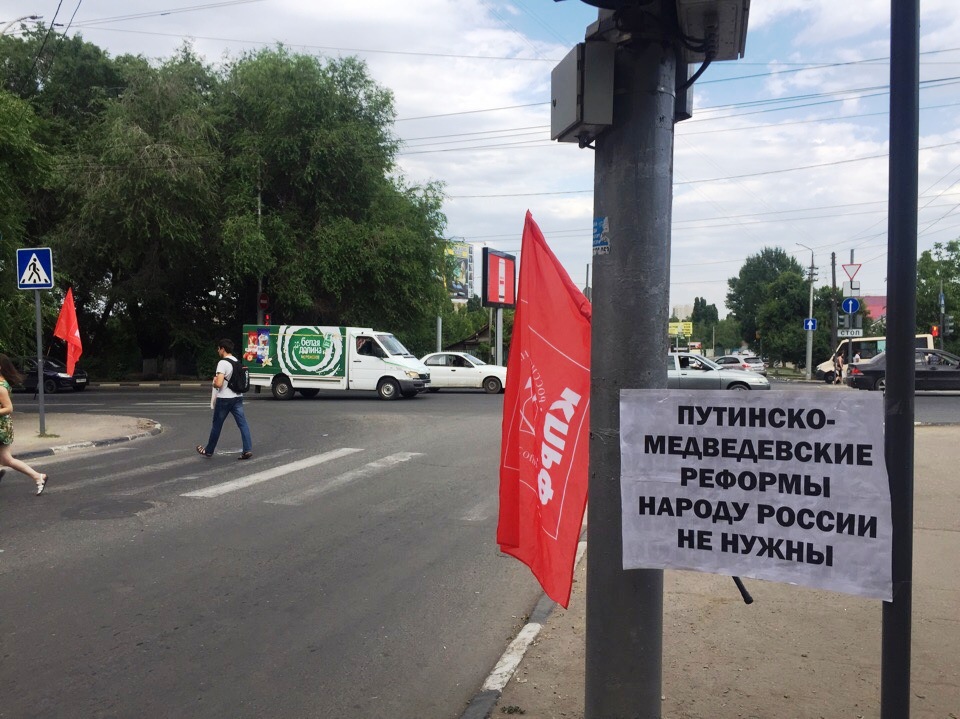 В Саратове продолжаются пикеты КПРФ против повышения пенсионного возраста, роста НДС, тарифов ЖКХ, цен на бензин.
