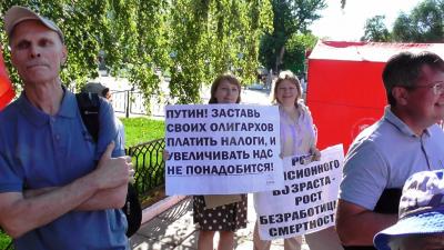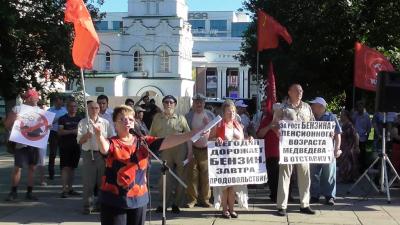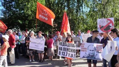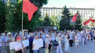 4 июля в Саратове прошёл очередной митинг против повышения пенсионного возраста, роста цен на бензин, а также увеличения тарифов на ЖКУ, ОСАГО и НДС, организованного местным отделением КПРФ. Он стал вторым «разогревающим» митингом перед всероссийской акцией протеста КПРФ.