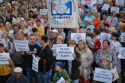 Под знаменами КПРФ, организатора митинга, собрались люди разных политических взглядов и убеждений, разных профессий и социального статуса, объединенных общей целью — не допустить принятия антинародного законопроекта и защитить свои социальные права.
