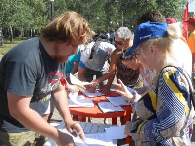 На акции протеста продолжился сбор подписей против пенсионной реформы, за проведение Референдума.