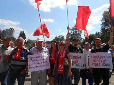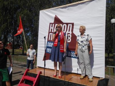 Первым выступил депутат Пермской городской Думы, Первый секретарь Ленинского райкома КПРФ, к.т.н., доцент Г.А.Сторожев, активный участник всех акций протеста, представитель той части депутатского корпуса, которая вопреки «единороссовскому» большинству, поддерживает народ, её избравший. Далее выступила Первый секретарь Пермского крайкома КПРФ К.А.Айтакова. Они говорили не только о губительной для народа России пенсионной реформе, но и о лицемерии власти всех уровней, тихой сапой, ускоренно, «протаскивающей» людоедский закон под вопли футбольного чемпионата, изрядно обескровившего бюджет страны, напоминающего пир во время чумы. Причём, местные депутаты в лице «единороссовского» большинства в Законодательном Собрании Пермского края одни из первых поддержали пенсионную реформу. При этом, глава администрации города Д.И.Самойлов, как и губернатор М.Г.Решетников вообще предпочли отмалчиваться. Им есть, на кого равняться: президент В.Путин, который вопреки своим предвыборным обещаниям, снова усадил в кресло премьер-министра ненавидимого народом, обнаглевшего от безнаказанности, Д.Медведева с всё той же одиозной командой министров-уничтожителей, вообще устранился от каких-либо действий по данной реформе. Пенсионная реформа же – прямое нарушение Конституции РФ, по которой запрещено принимать законы, ущемляющие права граждан, ухудшающие их положение. Более того, пункты Конституции в части возраста выхода на пенсию, нарушены данным законом о повышении пенсионного возраста: такое решение, изменяющее статьи Конституции, может принять только Референдум. На проведении Референдума настаивает и организует его КПРФ - при массовой поддержке всех левых сил, всех оппозиционных к власти организаций и, конечно, граждан России.