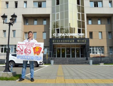 В знак поддержки сегодняшним акциям протеста у здания Госдумы против принятия законопроекта о повышении пенсионного возраста, алтайские комсомольцы организовали одиночное пикетирование дворца Пенсионного фонда Алтайского края.