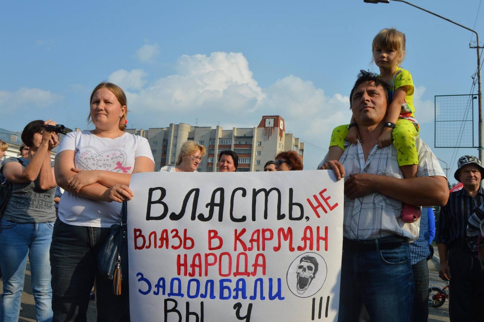 На главной площади города собрались около 500 человек. Многие пришли с самодельными плакатами.