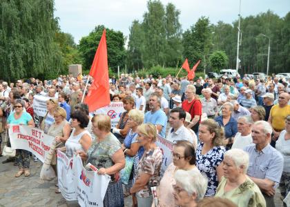 26 июля в г.Рязани в рамках Всероссийской акции протеста против повышения пенсионного возраста прошел митинг, организованный обкомом КПРФ. Надо сразу отметить, что городские власти под надуманными предлогами несколько раз отказывали рязанским коммунистам в согласовании митинга.