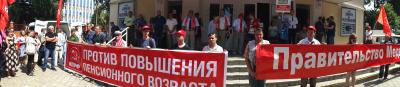 - Сегодня половина всех безработных в России – это люди в возрасте от 20 до 34 лет. Им будет сложней трудоустроиться, если в стране повысят пенсионный возраст. Кроме того, если этот закон будет принят, он непременно приведёт к стагнации в экономике. И, в конце концов, этот закон противоречит, как минимум, двум пунктам из указа Путина № 204: его положение об увеличении продолжительности жизни к 2030-му году до 80 лет и об экономическом прорыве. Этот закон будет препятствовать прорыву. Те, кто сохранил способность мыслить, понимает, что все это не приведет к повышению пенсий, наоборот, снизит их. КПРФ инициировала проведение референдума и подготовила вопросы, но как раз накануне Всероссийской акции протеста, 27 июля, проведение референдума на территории России было официально запрещено. Власти города запретили проведение митинга на главных площадях областного центра. Пыталась предложить территорию Боевой Дачи, довольно удаленной от центральных улиц, а также урочище «Солянка», где практически нет большого скопления людей. Однако куряне, возмущенные людоедским законом, добрались до разрешенной для протеста площадки и образовали довольно большое кольцо.