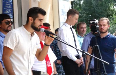 Митинг открыл секретарь Курского обкома партии, 1-й секретарь Железнодорожного РК КПРФ, депутат Курского городского Собрания Алексей Николаевич Бобовников.