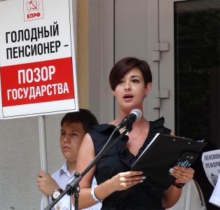 Председатель КРО ООО «Надежда России» Анжелика Данилова, выступая, отметила, что женщина не должна, да и физически не может работать до 63 лет. Она должна воспитывать детей, помогать внукам. Депутаты Госдумы от «Единой России» в Курске избрались и уехали в столицу, забыв о своих обещаниях. Выступающая предложила «гнать их в шею» - выразить всеобщее недоверие. Ее очень активно поддержали митингующие – аплодировали все присутствующие на площади.