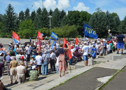 Городской митинг протеста против антисоциальной политики властей и повышения пенсионного возраста прошёл сегодня, 28 июля, на площади Ленина в Биробиджане. На акцию, организованную коммунистами совместно с местными отделениями оппозиционных политических партий, пришло несколько сотен биробиджанцев, передаёт корреспондент областной независимой интернет-газеты «Набат».