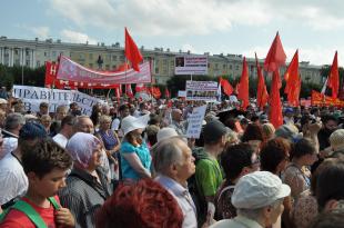 28 июля 2018 года на площади Ленина в северной столице состоялся митинг против повышения пенсионного возраста, организованный КПРФ совместно с целым рядом общественно-политических движений, организаций и профсоюзных объединений.