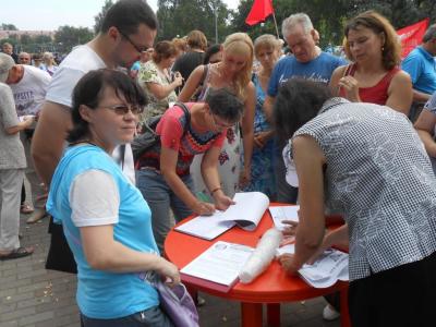 Участники митинга выстроились с портретами депутатов-«единороссов», представляющих в Государственной Думе Пермский край, в «шеренгу позора», и вся площадь скандировала: «Позор! Позор! Позор!» Эти депутаты, как и вся фракция «Единой России» в Законодательном Собрании Пермского края, дружно проголосовали за повышение пенсионного возраста, которое ввергнет не только пожилых людей, но и стариков, и молодёжь в пучину безработицы, крайней нищеты, вынужденной преступности и конечно, смертности!