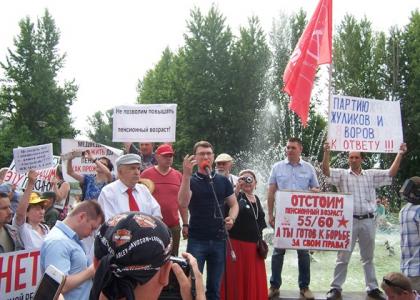 28 июля в Казани, в сквере Тинчурина, состоялся митинг, организованный Татарстанским региональным отделением Коммунистической партии, против повышения пенсионного возраста и роста НДС. Митинг прошёл в рамках Всероссийской акции протеста КПРФ. В нём приняли участие свыше двух тысяч человек. На митинг вышли сторонники партии, представители профсоюзов, обманутые дольщики. Лозунги митингующих: «Нет – пенсионной реформе Медведева!», «В отставку буржуйское правительство!», «В гробу мы видели пенсию!», «Отстоим пенсионный возраст 55/60», «Пенсии – пенсионерам. Тюрьмы – коррупционерам. «Едро» – на вылет!».