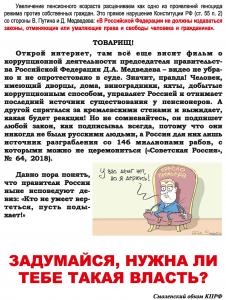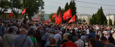 28 июля в городе-герое Смоленске на площади Победы (Смирнова) у кинотеатра «Октябрь» местное отделение Коммунистической партии Российской Федерации провело митинг против повышения пенсионного возраста и за смену социально-экономического курса в России. Принята Резолюция. Собрано 1172 подписи против принятия «людоедского закона», инициированного Правительством Российской Федерации.
