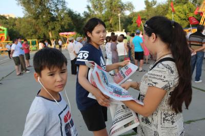 Во время митинга проводился сбор подписей против повышения пенсионного возраста, раздавались газеты «Правда» и «Коммунист Калмыкии», Информационный бюллетень Комитета КРО КПРФ.