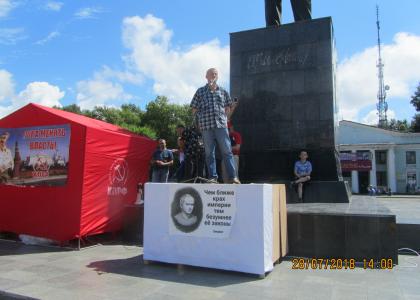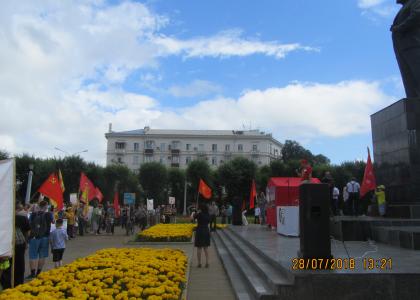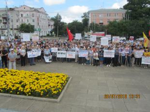 В городе Комсомольске-на-Амуре состоялся уже третий по счету в июле митинг против повышения пенсионного возраста и антинародной социально – экономической политики, проводимой в крае правящей партией «Единая Россия». Его организатором в рамках Всероссийской акции протеста выступила городская партийная организация КПРФ.