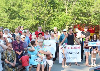 Люди пришли с плакатами и транспарантами «Власть лезет в карман народа», «Нам нужен референдум!», «Нет повышению пенсионного возраста», «Руки прочь от наших пенсий» и многими другими. Параллельно с проведением протестного мероприятия, был организован сбор подписей под петицией против повышения пенсионного возраста. За несколько часов удалось собрать 750 подписей.