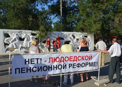 Власти, не стесняясь, упорно намерены увеличить женщинам пенсионный возраст на 8 лет – до 63-х, а мужчинам – до 65-ти… Это значит, что за эти дополнительные годы «реформаторы» украдут у каждого пенсионера, разумеется, если он доживет: у женщины - более миллиона, у мужчины – более 800 тыс. рублей. В ответ на такие планы народ отвечает: «Людоедское правительство – в отставку!»