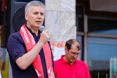 Митинг на площади у городского ДК в Октябрьском районе открыл выступлением первый секретарь крайкома партии, руководитель фракции КПРФ Законодательного собрания Пётр Медведев. Он привёл многочисленные факты, позволяющие сделать вывод: пенсионная «реформа» – ни что иное, как геноцид.