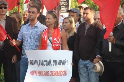 В центре Великого Новгорода прошел митинг под флагами КПРФ. К митингующим коммунистам и их сторонникам присоединились и члены других партий.