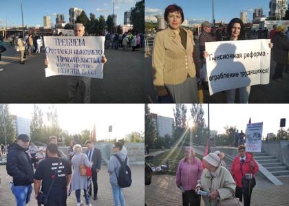 против пенсионной реформы правительства России. Лозунги митингующих: «Народ против пенсии в 65», «Смертоносная