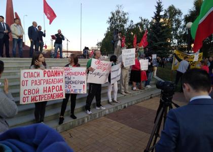 23 августа в Казани в сквере Славы прошёл очередной митинг против пенсионной реформы. Акцию протеста организовал Приволжский райком КПРФ. В митинге коммунистов приняли участие представители других партий и противники строительства мусоросжигательного завода в посёлке Осиново.
