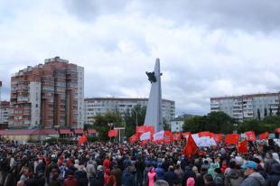 На фото: митинг на площади возле СКК им. Блинова; выступающие - А.А. Кравец, О.Н. Смолин, А.А. Алехин.