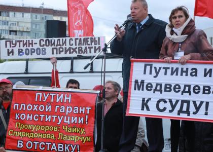На помост к микрофону один за другим поднимались омичи, чтобы громко заявить: «Правительство Медведева в отставку!». В своих выступлениях митингующие подвели итог главному событию прошедшей недели – обращению президента к гражданам России по поводу пенсионной реформы. Люди пришли к единому мнению, что оно не оправдало ожиданий. Как сказал в своём выступлении первый секретарь омского обкома КПРФ Александр Кравец: «Все аргументы президента – ложь и фальшь. Не лукавил Путин только в одном – когда говорил, что в 90-е годы, во времена разгула демократии катастрофически упала рождаемость. В остальном, всё – ложь! Президент встал на защиту олигархов!».