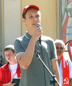 Ведущий митинга 1-й секретарь КРО ЛКСМ РФ А.И. Понарин предложил почтить минутой молчания память погибшего в результате теракта, организованного националистами и радикалами главы ДНР Александра Захарченко.