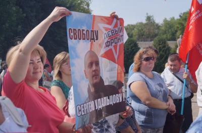 Собравшиеся требовали освободить лидера движения «Левый фронт» Сергея Удальцова, арестованного под надуманным предлогом 14 августа.