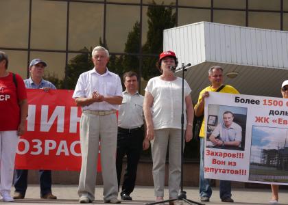 Митинг начался в 12-00 на площади у Областного центра культуры. На митинге выступили депутат ГД РФ Т.В. Плетнёва, председатель Комитета рабочих Алексей Чаукин, представители обманутых дольщиков Татьяна Кудаева и Татьяна Данько, молодой коммунист и кандидат в Горсовет на довыборы Александр Ушаков, коммунисты Дмитрий Зиновьев и Геннадий Платонов. Завершил митинг первый секретарь Липецкого ОК КПРФ, депутат областного Совета Н.В. Разворотнев. Резолюцию, принятую в конце митинга, зачитал второй секретарь обкома КПРФ С.В. Токарев.