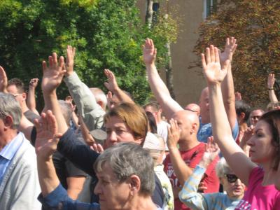 сбор подписей против повышения пенсионного возраста. На митинге поставили свои