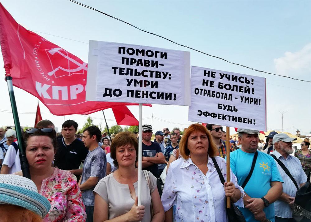 В Брянске прошёл третий по счёту митинг против повышения пенсионного возраста. И хотя людей на него пришло меньше, чем на предыдущий, зато лозунги и выступления были злее – этому, видимо, поспособствовало телеобращение 29 августа президента страны Путина к народу, принявшего сторону олигархов и одобрившего проведение пенсионной реформы.