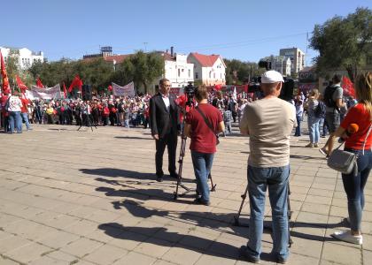 Капиталистический режим слезой не пробьешь. Вы уже увидели, на чьей стороне оказался президент (голос из рядов собравшихся: “Он и был там”). Я говорю о людях, которые питали иллюзии, что “барин нас услышит”, как народу плохо, но этого не произошло. По Конституции мы имеем право на референдум. Его инициатором выступила КПРФ, но по всей стране нас блокируют спойлерские группы, которые регистрируют в первую очередь. Правительство не желает подчиниться воле народа. К сожалению, нас, коммунистов, в законодательных органах меньшинство и мы не можем заблокировать эту людоедскую реформу. Но нам нельзя опускать руки. За нас ничего не решено!