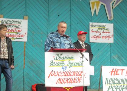 — Ранним утром прошёл ливень, что очень обеспокоило организаторов митинга. Синоптики же обещали дождь с обеда. Но неожиданно разведрило. Яркие лучи солнца брызнули на город, радуя жителей хорошей погодой и возможностью заняться копкой картофеля и тихой охотой за рыжиками. Но не все жители озаботились этими бренными делами. Помнили, что объявлен протестный митинг против повышения пенсионного возраста, и от личной гражданской позиции зависит личная судьба каждого и судьба детей и внуков, – рассказывает Леонид Сорокожердьев.