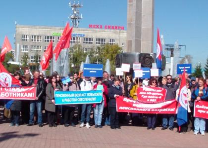 22 сентября в Иркутской области КПРФ совместно с профсоюзами провела акции протеста против пенсионной реформы. В Иркутске митингующие собрались на площади 50 лет Октября. В митинге приняли участие представители профсоюзных организаций из городов и районов Приангарья.