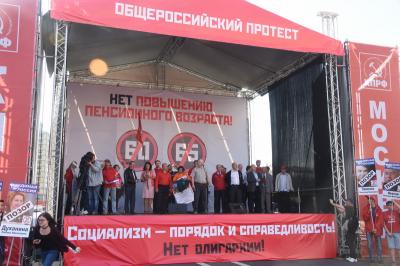 Центральный, Московские городской и областной Комитеты Коммунистической партии Российской Федерации, Движение в поддержку Армии, Союз Советских офицеров, Всероссийское женское движение «Надежда России», Ленинский Коммунистической Союз Молодежи Российской Федерации, многие левые народно-демократические общества и движения объявили о проведении 22 сентября третьего решающего этапа Общероссийской акции протеста:"Не допустим социальный террора власти против собственного народа!", направленной против пенсионной "реформы".