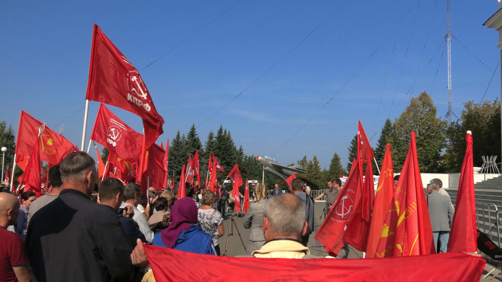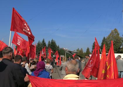 22 сентября в Чебоксарах состоялся массовый митинг против повышения пенсионного возраста, организованный коммунистами. Он прошёл в рамках третьего решающего этапа Всероссийской протестной акции ЗА ОТМЕНУ ПЕНСИОННОЙ РЕФОРМЫ, проходившей под лозунгом «Не допустим социальный террор власти против собственного народа!». Сотни людей собрались на площади перед ДК имени П.П. Хузангая, чтобы сказать своё твёрдое «НЕТ!» очередной грабительской авантюре властей, предлагаемой антинародным правительством Д.А. Медведева (лидера партии «Единая Россия»).