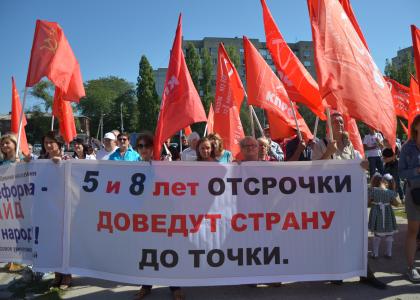 22 сентября на площади у ростовского Дворца спорта в ходе третьего этапа Общероссийской акции протеста "Не допустим социальный террор власти против собственного народа!", прошел массовый митинг, на котором жители донской столицы выступили против повышения пенсионного возраста, роста цен и тарифов, против подтасовки голосов на выборах, за смену проводящей антинародную политику власти и счастливое будущее нашей страны. Его открыли и вели первый секретарь Ростовского ОК ЛКСМ РФ И.И. Кислицына и первый секретарь Железнодорожного РК КПРФ Д.В. Животов.