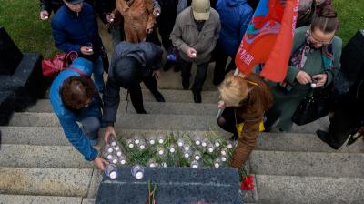 Коммунисты вместе с новосибирцами возложили цветы к мемориальному комплексу и зажгли свечи, почтив память защитников Верховного Совета, и борцов за Советскую власть в Новосибирске.