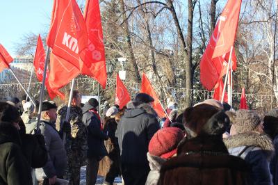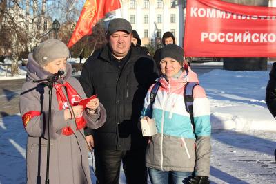Митинг открыла лидер коммунистов региона Тамара Казанцева, которая вручила партийные билеты вновь вступившим в партию и памятный орден «100 лет Ленинскому комсомолу».