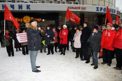 В рамках общероссийской декабрьской акции протеста против антинародной политики властей у памятника И.С. Никитину по призыву КПРФ собрались неравнодушные воронежцы, объединенные общей идеей сказать твердое «нет» людоедским реформам и произволу чиновников.