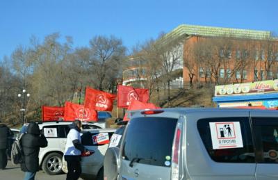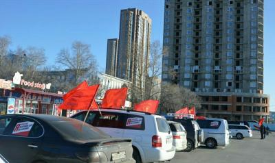 с символикой КПРФ. Участники автопробега проехали по всем районам Хабаровска.